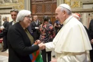 La foto che ritrae Carla Osella con Francesco I è pubblicata nel reportage di un suo incontro con lui insieme a 500 rom e sinti provenienti da tutta Italia – https://www.istitutosecolareangelamerici.org/carla-osella-dal-papa/