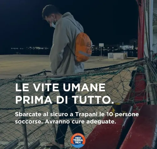 In una nota, Mediterranea Saving Humans spiega che “la nave Mediterranea ha attraccato al porto di Trapani, disobbedendo all’ordine del Viminale di dirigersi a Genova per far sbarcare con urgenza le dieci persone che abbiamo soccorso. Ora sono al sicuro e potranno ricevere le cure mediche e psicologiche adeguate.