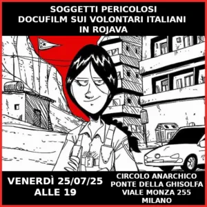 Soggetti pericolosi, docufilm sui volontari italiani in Rojava. Venerdì 25 luglio 2025 ore 19:00 Circolo Anarchico Ponte della Ghisolfa Viale Monza 255 Milano