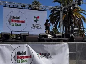L’obiettivo: denunciare il genocidio israeliano a Gaza e chiedere l’apertura di un corridoio marittimo umanitario che consenta il libero ingresso degli aiuti di base alla popolazione di Gaza.