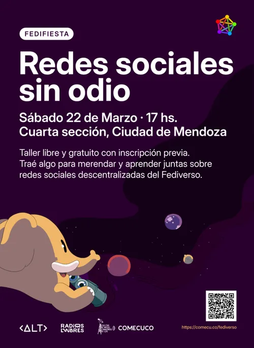 Desde la 17’00 de la tarde, entre mate y mate, conoceremos el Fediverso, un universo de redes sociales libres y conectadas entre sí que se oponen al modelo de redes corporativas privadas convertidas en amplificadores de bulos y discursos de odio.