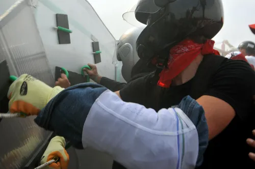 - Allo stesso modo, piuttosto che arrestare le persone, la polizia spesso si concentra sul sequestrare scudi o striscioni. È meglio per la polizia andarsene con le braccia piene di nastro adesivo e plastica piuttosto che trascinare via un compagno.