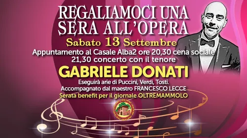 Sabato 13 settembre il bel canto approderà al Casale alba2 con il tenore Gabriele Donati e il pianista Francesco Lecce.