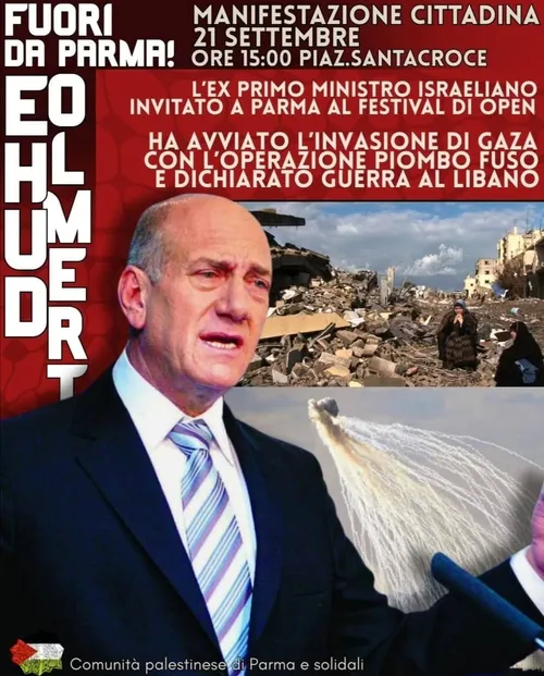Contropiano - Monday, September 15, 2025Lettera Aperta al festival di Open, agli Ospiti del Festival di Open, al Comune di Parma e all’Università di Parma. Oggetto: Richiesta di esclusione di Ehud Olmert dal Festival di Open. “LA NOSTRA RESISTENZA NON È SOLO PER LA LIBERTA’ DI UNA TERRA, MA PER LA LIBERTÀ DI ESSERE UMANI” […]