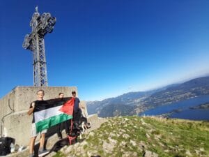 Pressenza - Monday, September 15, 2025Attivisti di AssoPacePalestina hanno portato in quota sulla cima della prima vetta del triangolo lariano, il Monte Cornizzolo di 1.240 metri, una grande bandiera della Palestina per dare un appassionato saluto alla Global Sumud Flotilla appena partita da Genova e diretta a Gaza. Seguiranno ulteriori ascese.