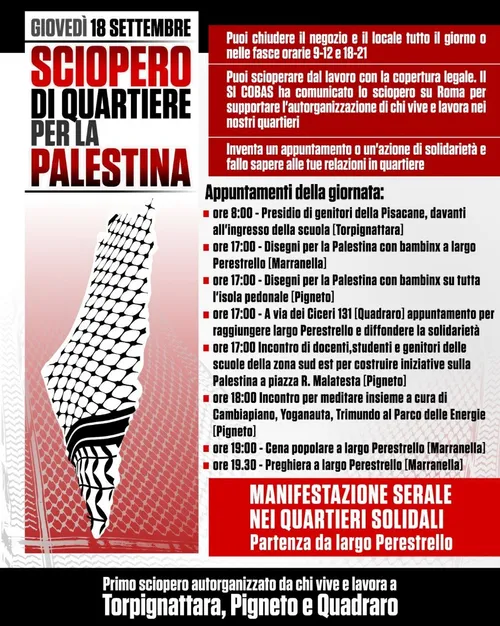 Radio Onda Rossa - Tuesday, September 16, 2025Giovedì 18 settembre a torpignattara, pigneto e quadraro, ci sarò il primo sciopero di quartiere in solidarietà con la Palestina.