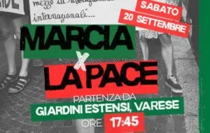 Pressenza - Wednesday, September 17, 2025Appuntamento il 20 settembre 2025 alle 17:45 ai Giardini Estensi di Varese per tornare nelle strade della città con la Marcia per la Pace: un’iniziativa che nasce dalla necessità di informare e rendere consapevoli i cittadini e le cittadine rispetto a ci che sta accadendo nel mondo. Conflitti, genocidi e disuguaglianze ci riguardano direttamente, in quanto frutto di precise scelte politiche ed economiche. Particolare attenzione sarà dedicata al genocidio del popolo palestinese che da quasi due anni vediamo accadere davanti ai nostri occhi, e Varese è schierata con gli attivisti della Global Sumud Flotilla per rompere il silenzio e agire concretamente a supporto della popolo palestinese così come tutte le vittime di politiche e pratiche economiche commerciali violente, repressive e genocidiarie.