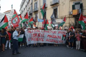Comunità palestinesi, Centro Culturale Handala Alì, Global Flotilla di Terra Campania, sindacati, organizzazioni territoriali, ANPI, collettivi studenteschi, centri sociali, attivisti, militanti e migliaia di cittadini comuni hanno invaso la piazza. Una mobilitazione coordinata in vista della grande manifestazione del 4 ottobre a Roma e dello sciopero generale indetto dai sindacati di base USB e CALP per il 22 settembre, che interesserà anche il blocco del porto di Napoli, delle ferrovie, degli aeroporti e delle università, con presidi in tutte le città italiane.