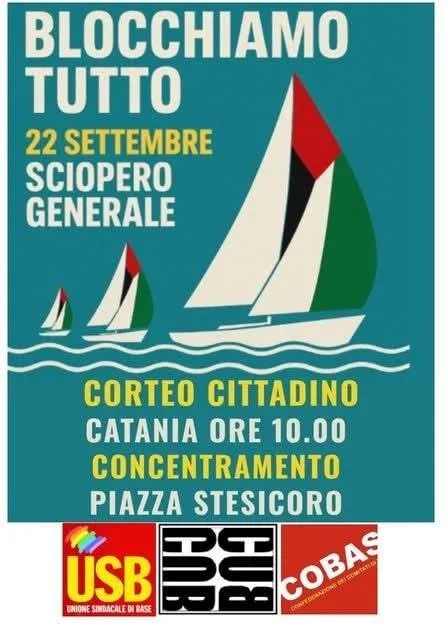 #STOPtheGENOCIDE Lunedì 22 settembre scioperiamo tutti contro il genocidio del popolo palestinese, per l'embargo e le sanzioni ad Israele, a difesa della Global Sumud Flotilla e della Freedom Flotilla Italia. #GlobalStrikeForGaza