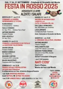 Pressenza - Thursday, September 18, 2025Il Palafeste di Grumello del Monte ospiterà per la prima volta, dal 17 al 21 settembre, la Festa in Rosso, organizzata dallo Sportello Sociale Val Calepio e da Rifondazione Comunista ValCalepio.