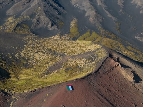 Osservatorio contro militarizzazione di scuole e università - Sunday, September 21, 2025Etna, monte Frumento, alcuni appassionati della montagna, sabato 20 settembre, hanno esposto oggi una grande bandiera Palestinese.