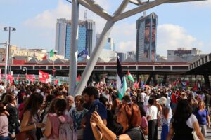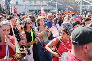 Nei volti c’era bellezza: sorrisi, canzoni, bandiere che si intrecciavano al vento. Eppure quella musica non cancellava l’orrore che ci raggiungeva da Gaza. Forse qualcuno di noi si è sentito persino fuori luogo, e tuttavia voleva esserci.