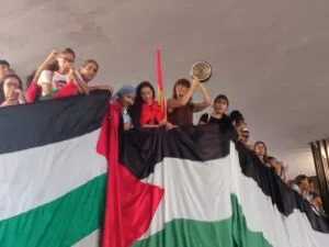 Per esprimere non solo lo sdegno per i crimini di guerra e la volontà genocidaria del governo israeliano e dei suoi apparati statali e militari, ma anche l’indignazione e la protesta contro il governo italiano che continua ad avere relazioni commerciali, anche nel settore delle armi, con lo Stato che si sta macchiando di genocidio.