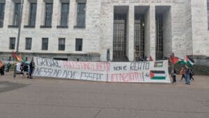 Pressenza - Wednesday, September 24, 2025Un presidio iniziato alle 8:30 del mattino per portare dalla Cub Info e Spettacolo solidarietà alla maschera licenziata per aver gridato “Palestina libera” alla Scala all’ingresso della Meloni poco prima di un concerto. Il presidio è andato crescendo, fino a coinvolgere una sessantina di persone. Si è denunciato il licenziamento politico firmato alla Scala dal sovrintendente Ortombina, da poco arrivato dalla Fenice e tra l’altro sostituito a Venezia in vece di direttore musicale dalla nota direttrice d’orchestra Vincenzi di estrema destra.