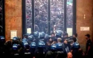 A Milano il corteo voleva bloccare la Stazione Centrale ma ha trovato i cancelli chiusi e le forze dell’ordine in assetto antisommossa che hanno iniziato a caricare pesantemente con manganellate e lacrimogeni.