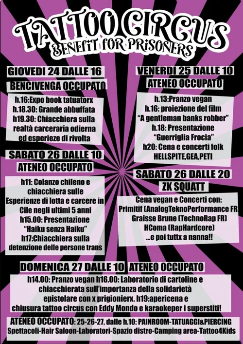Bencivenga - Wednesday, October 23, 2024Qui di seguito pubblichiamo la traduzione di uno scritto, un po’ datato ma sempre attuale, come contributo alla chiacchiera al B15 del 24.10.24 (giorno d’inizio della Tattoo Circus di Roma) su realtà carceraria, rivolte e prospettive di lotta contro le prigioni.