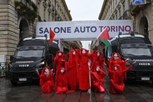 «A rendere l’evento ancora più surreale è la presenza di aziende citate nei report delle Nazioni Unite per aver tratto profitto dalle operazioni di occupazione di Israele in Palestina. È inammissibile che tutto questo accada nel centro di Torino, tanto più in questo momento storico, proprio nei giorni in cui la Global Sumud Flotilla si appresta a raggiungere le acque di Gaza per portare aiuti umanitari». Extinction Rebellion denuncia infatti anche la presenza al Salone di diverse aziende proprietà di multinazionali coinvolte in crimini di guerra. Tra gli stand degli espositori, ad esempio, la sudcoreana Hyundai, esporrà i suoi SUV elettrici di punta. Un’azienda che, come denunciato da Amnesty International e dal recente rapporto ONU a cura dalla relatrice speciale Francesca Albanese, è coinvolta tramite il filone Hyundai Machine, nelle demolizioni di abitazioni palestinesi nei Territori Occupati e complice nel genocidio in corso a Gaza.