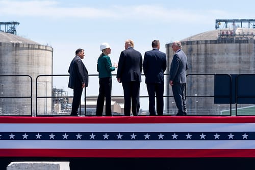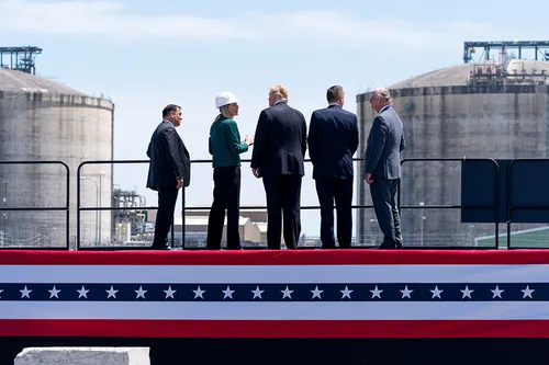 Trump visita il terminal GNL di Cameron, 14 maggio, 2019 (Foto di Shealah Craighead, Official White House ), Pubblico Dominio.A partire dal 2022 l’Italia ha incrementato le proprie importazioni di GNL, utilizzando i terminali esistenti di Panigaglia, Adriatic LNG e OLT Toscana, e ampliando la capacità con l’entrata in funzione del nuovo FSRU di Piombino (maggio 2023) e, più recentemente, di Ravenna. Secondo ARERA, nel 2024 l’Italia ha importato circa 14,7 miliardi di metri cubi di GNL, pari a circa il 25 % delle importazioni complessive di gas. Le principali provenienze del GNL sono Qatar, Stati Uniti e Algeria, che insieme coprono circa il 95 % del totale. In questo contesto, le forniture statunitensi hanno assunto un ruolo crescente, fino a rappresentare oltre un terzo del GNL importato dall’Italia nel 2024.