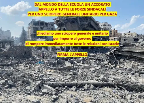 Per il ritiro di ogni autonomia differenziata - Tuesday, September 30, 2025In una settimana, dopo la pubblicazione dell’Appello (apri) promosso da un gruppo di docenti di tutta Italia, rivolto a tutti i sindacati, movimenti e associazioni, per uno sciopero generale per Gaza e per la rottura di tutte le relazioni con Israele, abbiamo avuto un vasto sostegno di cittadine e cittadini, militanti sindacali e di movimento. In Italia il grande movimento per la Palestina, che superi sigle e appartenenze, chiede che non si interrompa la mobilitazione.