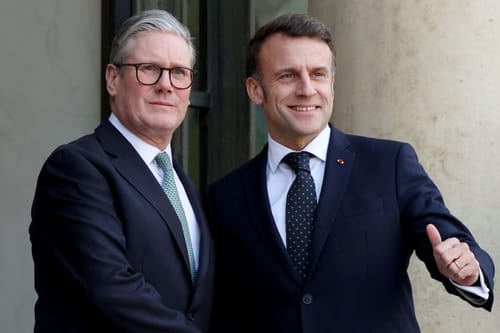 Il primo ministro britannico Keir Starmer partecipa ai colloqui sull’Ucraina in occasione di un incontro ospitato dal presidente francese Emmanuel Macron all’Eliseo. (Foto: Simon Dawson / No 10 Downing Street via Wikimedia Commons)