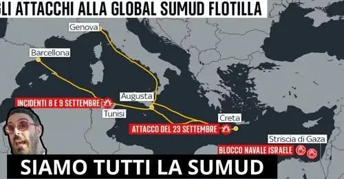 La Global Sumud Flotilla diretta a #Gaza è sotto minaccia di un possibile attacco israeliano. Una situazione esplosiva che potrebbe degenerare da un momento all’altro.