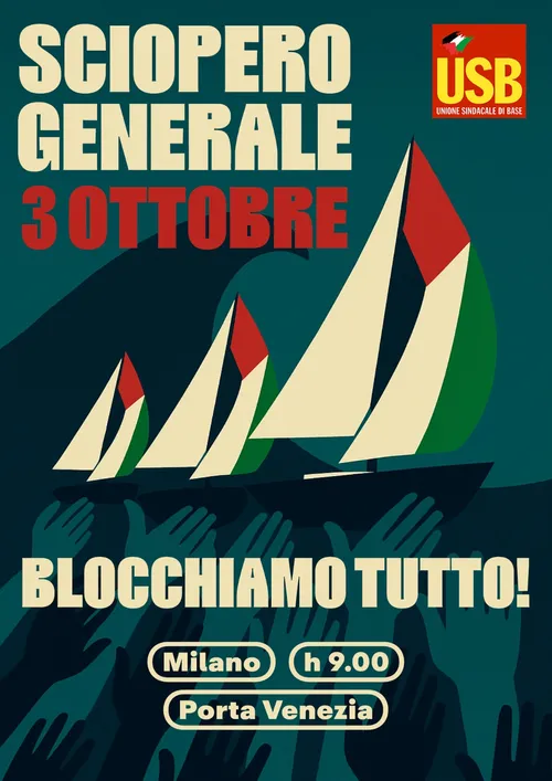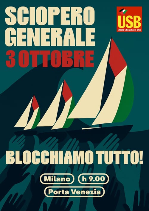 Contropiano - Thursday, October 2, 2025Non appena hanno iniziato a circolare le notizie dell’abbordaggio della Flotilla, immediatamente il presidio di Piazza Gaza (ex-piazza della scala) veniva invaso da centinaia di solidali. Verso le 21.30 circa, con la Piazza ormai piena, un corteo determinato e aperto dallo striscione “Blocchiamo tutto!” ha iniziato a dirigersi verso Cairoli-Castello, […]