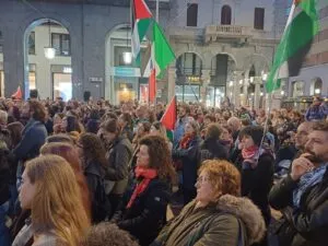 Si è arrivati all’ospedale cantando Bella Ciao, lanciando slogan sulla Palestina Libera e sulla Resistenza, e qualche slogan contro la presidente del Consiglio Meloni. Molti cittadini affacciati alle finestre e ai balconi applaudivano al passaggio del corteo e i manifestanti li invitavano a scendere a manifestare.