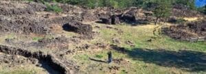 Siamo sul versante nord dell’Etna, lungo la pista altomontana, nel territorio di Castiglione di Sicilia, e Andrea ci mostra i muretti a secco di pietre laviche con cui i pastori costruivano gli ovili per le greggi e i ripari per se stessi. E ci racconta di aver saputo da testimonianze orali che questi rifugi venivano poi coperti con tetti di tronchi, ginestre e felci. Scopriamo così non soltanto un luogo ma anche frammenti di storia del territorio etneo.