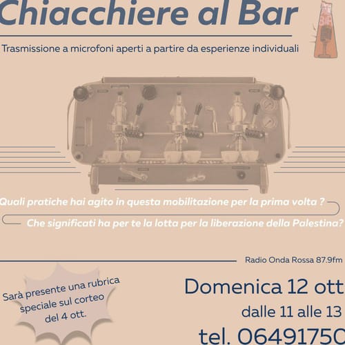 Radio Onda Rossa - Thursday, October 9, 2025Chiacchiere al bar torna con una puntata dedicata alle mobilitazioni sulla Palestina di questo inizio autunno!