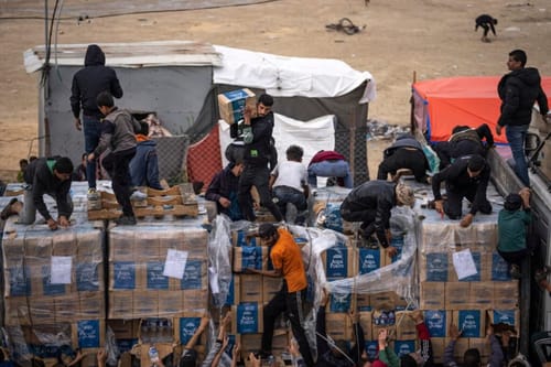 Il saccheggio di un camion di aiuti a Rafah. ApNella mattina di venerdì scorso, nella zona costiera di Khan Younis, un violento scontro si è consumato attorno a Majayda Street, una zona con poche case di residenti e molte tende di profughi da Khan Younis. La battaglia ha visto coinvolti membri della famiglia Majayda pesantemente armati e polizia di Hamas supportata da miliziani delle brigate al Qassam; sono state usate armi pesanti per ore fino all’intervento dal cielo dei missili israeliani che hanno colpito le forze di Hamas, con decine di vittime alla fine della giornata.