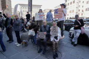 Pressenza - Saturday, October 18, 2025Una folta partecipazione di residenti americani a Firenze ha animato questa mattina un presidio davanti all’ingresso del Comune di Firenze in Piazza della Signoria. Tutti rigorosamente con coloratissimi cartelli hanno protestato in concomitanza con altri presidi simili in varie città di Italia e all’estero.