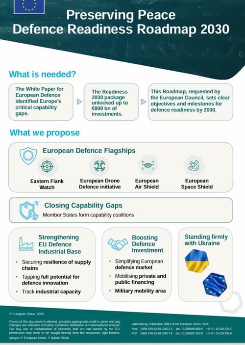 Osservatorio contro militarizzazione di scuole e università - Sunday, October 19, 2025“Preservare la pace – Tabella di marcia per la prontezza alla difesa 2030”, questo il titolo di un piano, l’ennesimo, che dovrebbe dare forza e impulso al sistema militare UE. Non bastava il libro bianco della difes e il Rearm Europe che ora arriva un altro tassello dei processi di militarizzazione, un piano globale per rafforzare le capacità di difesa europee.