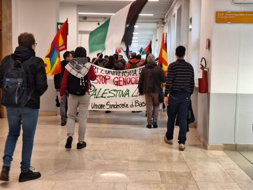 Osservatorio contro militarizzazione di scuole e università - Sunday, October 19, 2025Come è avvenuto in moltissime città italiane nelle settimane a partire dallo sciopero del 22 settembre, e in coincidenza con il blocco illegale della Global Sumud Flotilla prima e della Freedom Flotilla poi, manifestazioni, anche a Torino proteste e blocchi si sono progressivamente intensificati fino a culminare nel nuovo sciopero del 3 ottobre, che ha visto una grandissima partecipazione non solo di lavoratrici e lavoratori, ma anche di studentesse e studenti.
