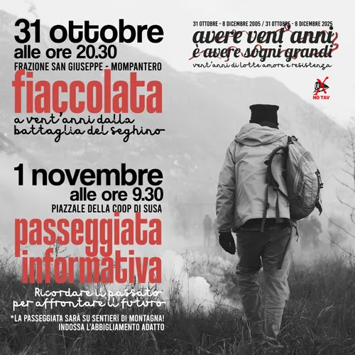 The post 31 OTTOBRE - 8 DICEMBRE 2005 / 31 OTTOBRE - 8 DICEMBRE 2025 : VENT'ANNI DI LOTTA, AMORE E RESISTENZA first appeared on notav.info.