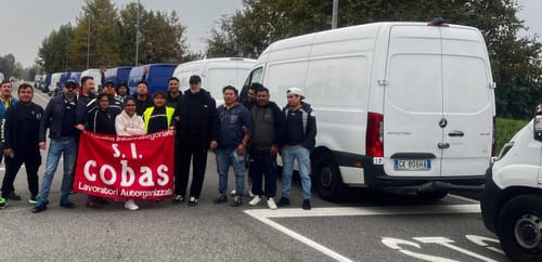 Lavoratori in sciopero a Sda Bergamo per difendere la garanzia del salario e del posto di lavoro.