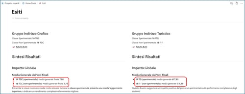 “I primi risultati di valutazione comparata basata su prove comuni, parallele e voti finali evidenziano un impatto sostanzialmente positivo. Le classi sperimentali hanno registrato una media generale finale superiore rispetto alle classi di controllo: si è rilevata una media di 7.93 contro 6.90 per le classi di controllo.