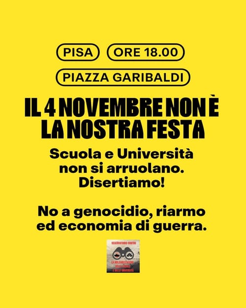Osservatorio contro militarizzazione di scuole e università - Tuesday, October 28, 2025Il 4 novembre non è la nostra festa!