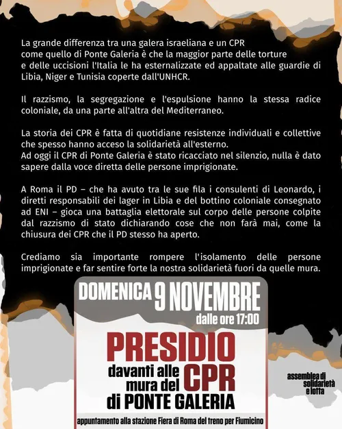 L38Squat - Wednesday, October 29, 2025Domenica 9 novembre saremo al corteo contro il porto crocieristico a Fiumicino e nel pomeriggio ci uniamo al presidio solidale davanti alle mura del CPR di Ponte Galeria