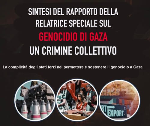Le conclusioni della Relatrice Speciale sono definitive: le strutture coercitive globali devono essere smantellate, il sostegno militare e politico deve essere sospeso e la complicità nel genocidio deve finire (paragrafo 70).