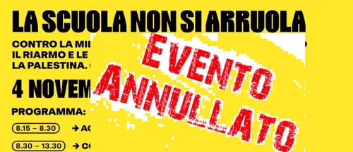 Evento annullato. Il Convegno del 4 novembre “La scuola non si arruola” annullato dal MIM