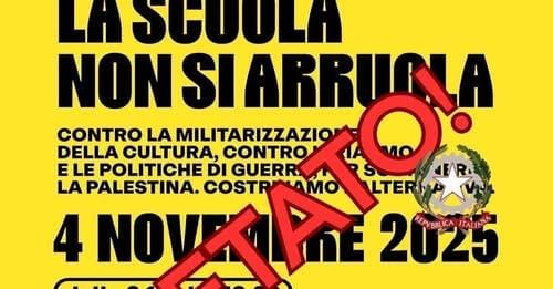 #nowar Vietato il convegno “La #scuola non si arruola”. No alla censura! La formazione è libera! - Firma la petizione! Io ho firmato.