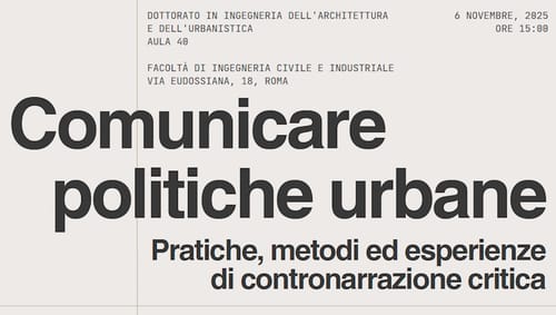 Segnaliamo per il taglio critico e i temi che ci sono affini, il seminario inserito nelle attività del dottorato in Ingegneria dell’architettura e dell’urbanistica: