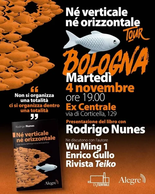 EuroNomade - Monday, November 3, 2025Segnaliamo l’incontro con Fedrigo Nunes a Bologna il 4 novembre: in occasione del suo Né vericale né orizzontale Tour, l’autore dialogherà con Wu Ming 1, Enrico Gullo e con la redazione di Teiko.