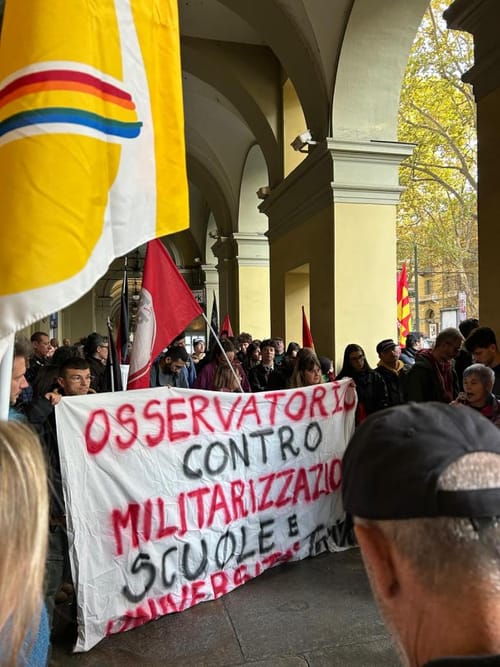 Osservatorio contro militarizzazione di scuole e università - Tuesday, November 4, 2025Nell’ambito delle manifestazioni contro la celebrazione del 4 novembre come “Festa delle Forze Armate” a Torino, sotto le sede dell’USR, si sono riuniti docenti, studenti, studentesse e cittadine/i per affermare a gran voce che non c’è nulla da festeggiare!