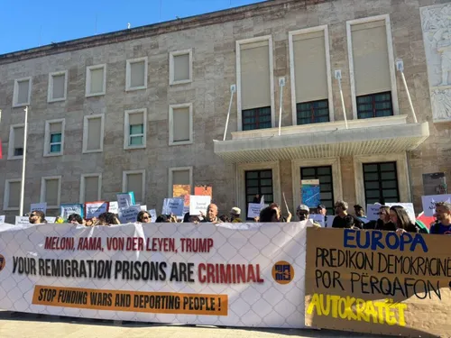 Progetto Melting Pot Europa - Wednesday, November 5, 2025L’1 e il 2 Novembre 2025 si è tenuta in Albania la mobilitazione del Network Against Migrant Detention, una rete di realtà italiane e albanesi unite nell’obiettivo di contrastare l’accordo Rama-Meloni, che ha permesso la creazione di due centri detentivi per persone migranti in Albania sotto giurisdizione italiana. È la seconda protesta organizzata nel paese delle aquile, dopo quella dell’1 dicembre 2024, quando i centri erano ancora vuoti.