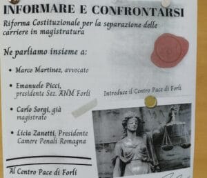Organizzato dal Centro Pace con Libera e Costituzione e Democrazia, si è parlato della riforma con il dottor Carlo Sorgi, già magistrato, il dottor Emanuele Picci, presidente sezione Associazione Nazionale Magistrati di Forlì, e con gli avvocati Marco Martines e Licia Zanetti, presidente Camera penale Romagna.