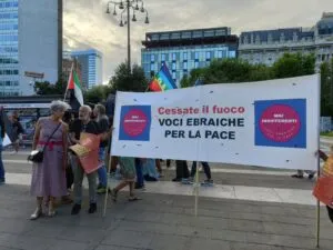 Siamo tutti iscritti alla Comunità di Milano, tranne Gad Lerner iscritto a quella di Casale Monferrato. Qualcuno del nostro gruppo ha deciso di uscire dalla Comunità milanese, per l’evidente spostamento a destra. Abbiamo partecipato a due assemblee della Comunità stessa contestando la loro decisione di non partecipare con i propri gonfaloni alle celebrazioni del 25 Aprile. Noi abbiamo partecipato con nostri striscioni con la scritta: Voci ebraiche per la pace – Cessate il fuoco, molto applauditi. Abbiamo inoltre ribadito il nostro antifascismo, in opposizione alle affermazioni di Walker Meghnagi, Presidente della Comunità Ebraica di Milano, secondo cui gli ebrei italiani sarebbero più tutelati dall’attuale destra di governo che non dai partiti di sinistra. In Comunità abbiamo trovato qualche consenso anche se prevale il pensiero di Meghnagi. Il rifiuto del gruppo dirigente a dialogare con voci dissenzienti rende tuttavia problematici i nostri rapporti con la Comunità stessa.