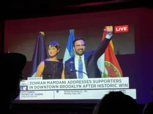 Alle 23.30 circa Zohran appare in diretta dal teatro Paramount di Downtown Brooklyn. La musica si ferma e dopo scroscianti applausi cala il silenzio. Nella mia vita non ricordo di aver assistito in tempo reale a un discorso di tale potenza. Dallo scorso settembre seguo Zohran Mamdani attraverso la stampa e sui social; per capire meglio ho partecipato a tre gruppi di canvassing (la campagna porta porta) e mi sono mezza congelata sugli spalti del Forest Hills Stadium per ascoltare dal vivo un suo discorso. Zohran è diventato una figura cara. Di lui pensavo: un uomo buono, rassicurante e progressista, ma anche con i piedi per terra. Zohran da stanotte è tutto questo e molto di più. Come ha detto Bernie Sanders al rally New York is not for sale: “Quest’uomo farà la storia”.