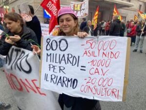 Da ultimo, ma non per importanza: in un’Europa imprigionata da oltre tre decenni dentro il Patto di stabilità, ovvero quella formula artefatta che chiede a tutti i Paesi membri di avere un rapporto debito/pil non superiore al 60% e un rapporto deficit/pil non superiore al 3% e che ha provocato infiniti tagli alla spesa sociale, la privatizzazione dei beni comuni e dei servizi pubblici e la compressione di redditi, salari e diritti, è moralmente accettabile che si deroghi al Patto di stabilità per le spese finalizzate alla produzione e all’acquisto di armi?