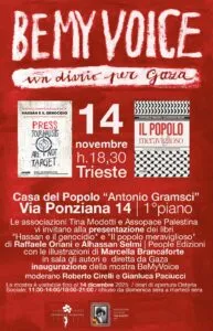 Pressenza - Friday, November 14, 2025Venerdì 14 novembre alle ore 18.30 presso la Casa del popolo “A. Gramsci” (1° piano) l’Associazione culturale Tina Modotti aps e Assopace Palestina Trieste invitano alla presentazione dei libri Hassan e il genocidio e Il popolo meraviglioso di Raffaele Oriani e Alhassan Selmi (people edizioni) con le illustrazioni di Marcella Brancaforte.